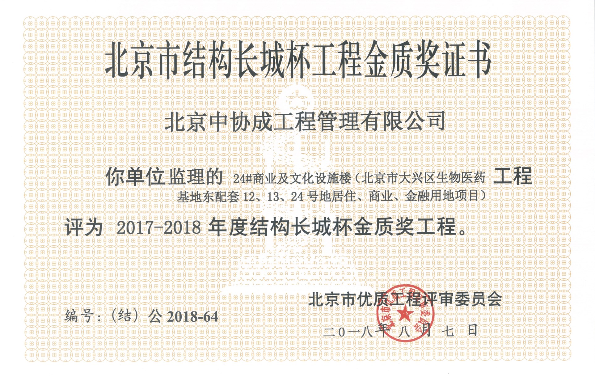 2017-201824#商業(yè)及文化設(shè)施樓結(jié)構(gòu)長城杯金質(zhì)獎