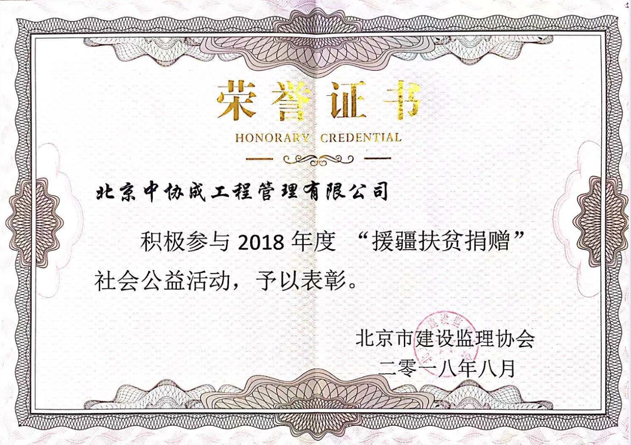 2018年度援疆扶貧捐贈公益活動榮譽證書