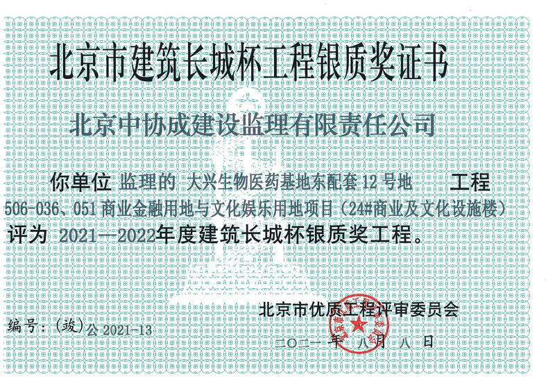 2021-2022年度建筑長城杯銀質獎-大興生物醫藥基地東配套12號地商業金融用地與文化娛樂用地(24號商業及文化設施樓)