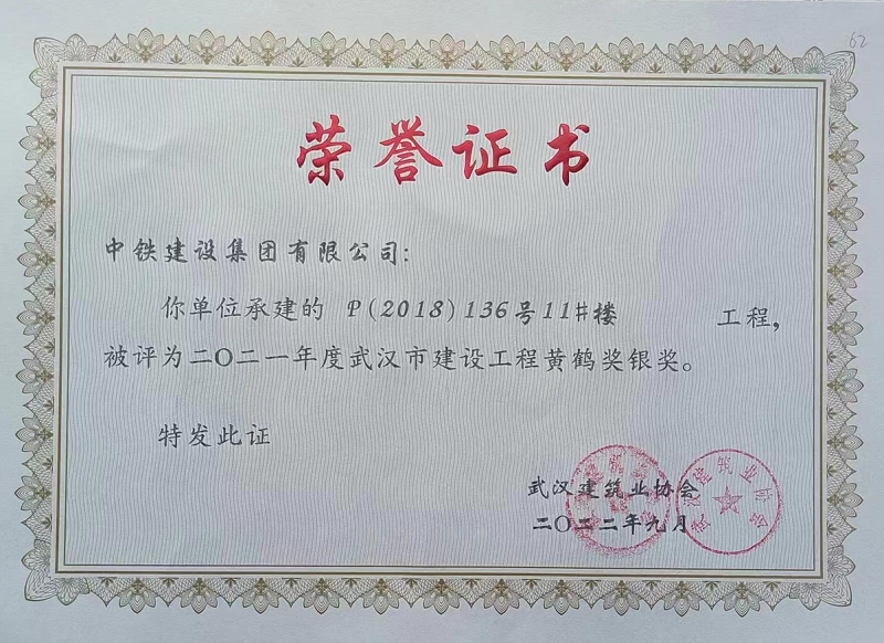 二〇二一年度武漢市建設工程黃鶴獎銀獎-P(2018)136號11#樓工程