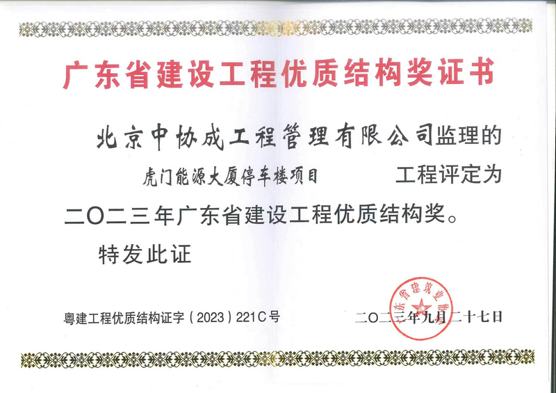 二〇二三年廣東省建設工程優質結構獎-虎門能源大廈停車樓項目