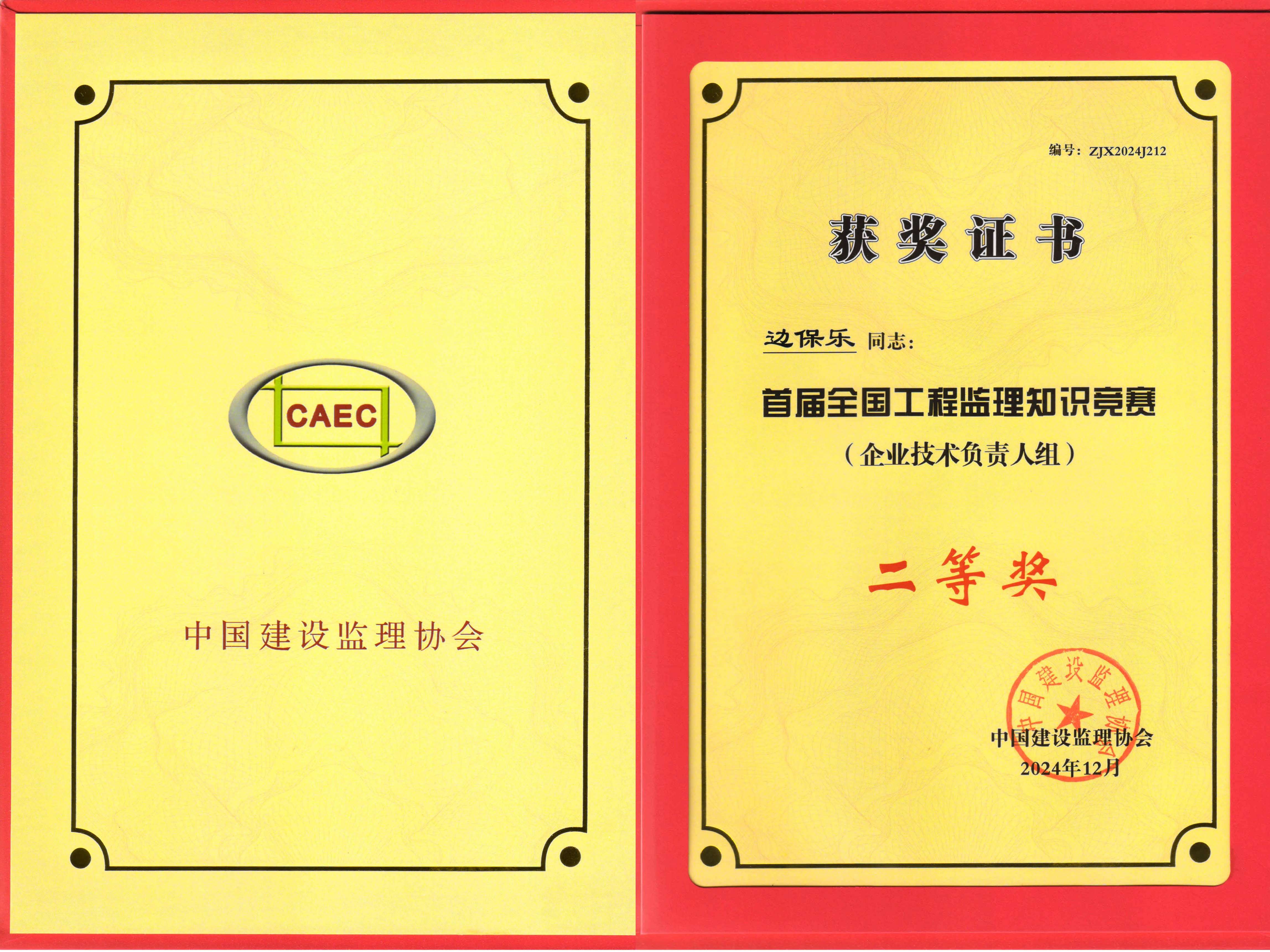 首屆全國工程監理知識競賽(企業技術負責人組)”二等獎“